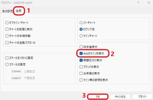 これでチャート上にAskラインが表示されるようになります。