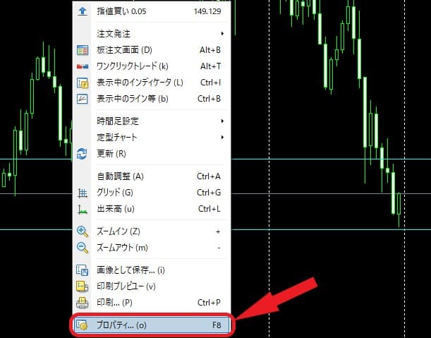 まずは、MT4のチャート上で右クリック。