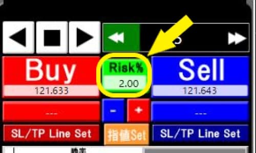 私がお勧めしている練習ソフトでは、設定したリスク%と損切りまでの幅でロットを自動計算する機能がついています。