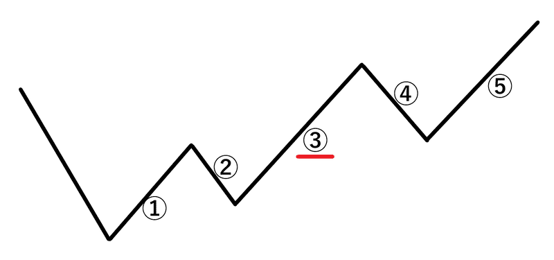 エリオット波動では、伸びる方向の波のうち、3波が最も大きくなるとされています。