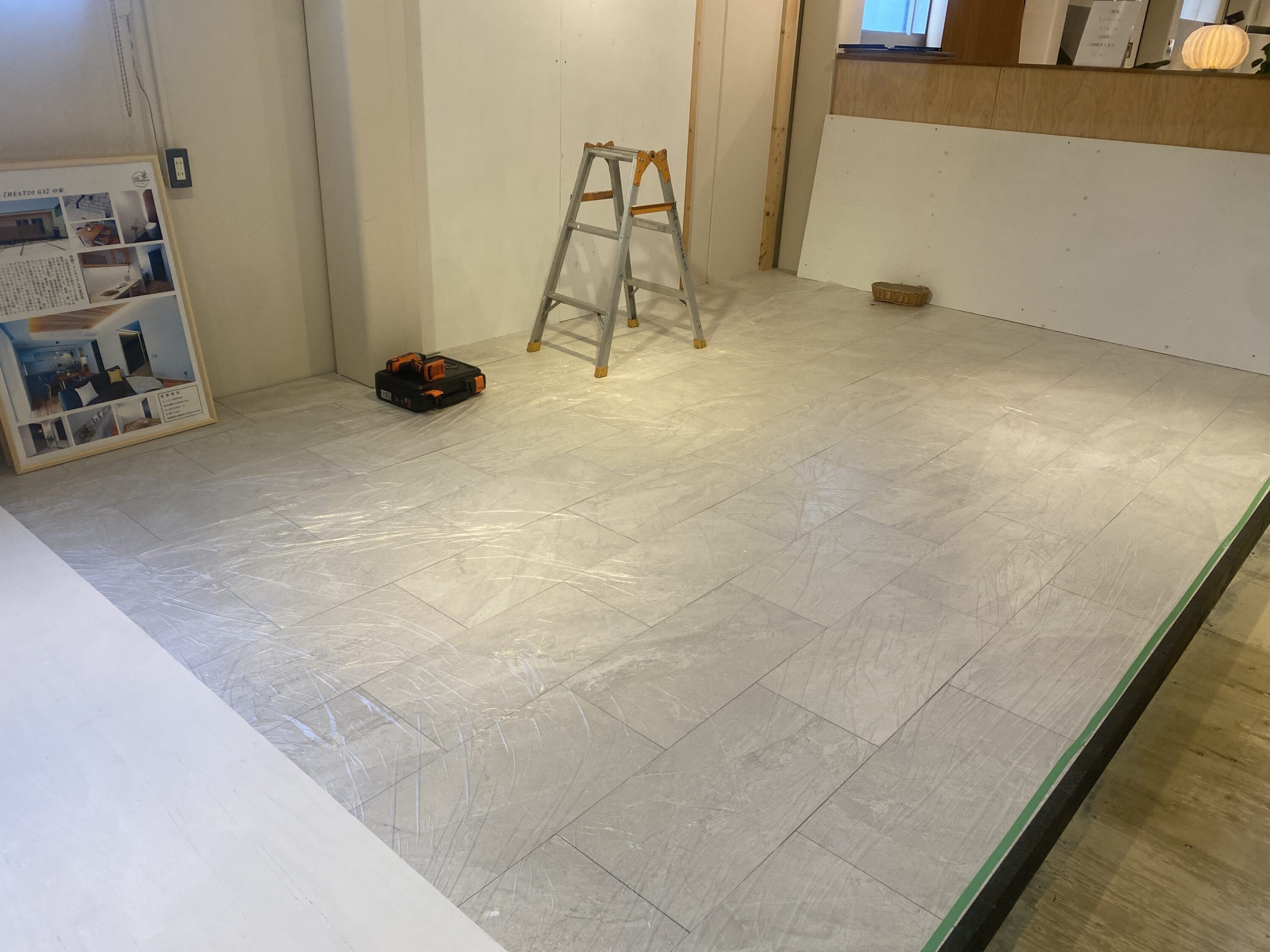 ********************* 今日は天気も穏やかで暖かな日でしたね。ショ ールームの2階ではスタッフ手作りによるプチ リニューアルが進んでいます。今までカーペット だったところがタイル