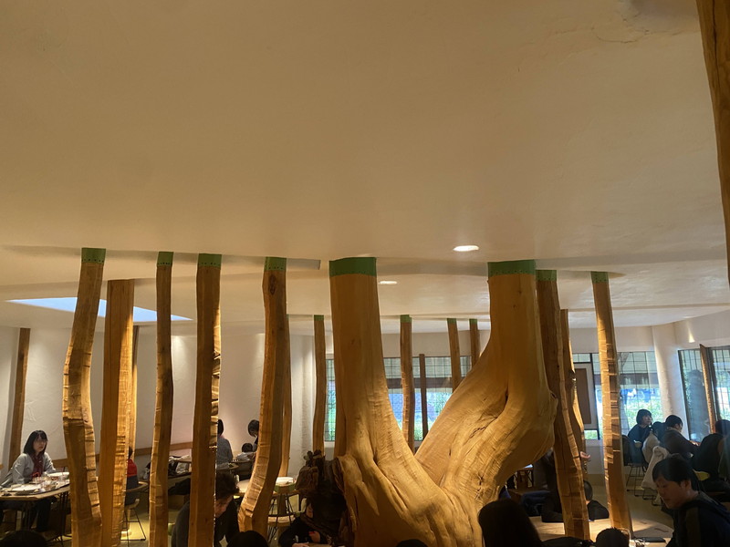 カフェには栗の木を使った