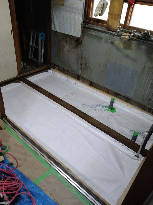 結露防止に防湿フィルムを敷いてから、