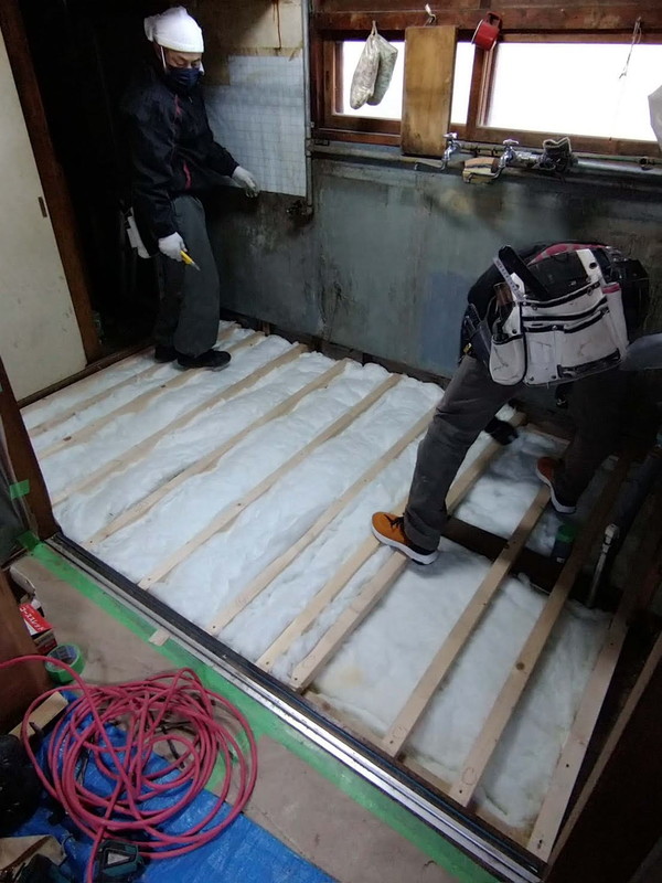 断熱材を床に敷きこんだり、壁に貼り付ける
