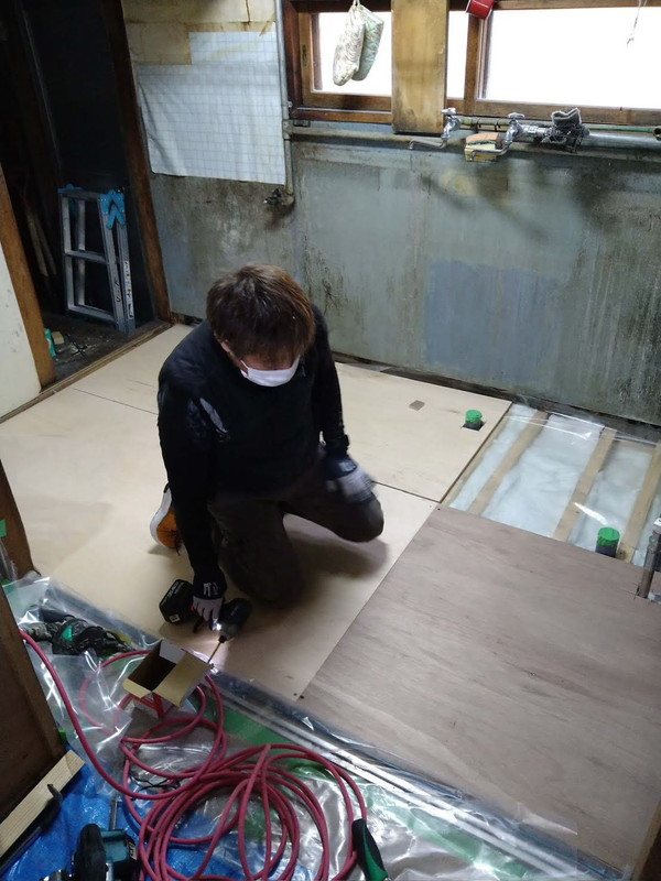床下地の合板を張る方法です。