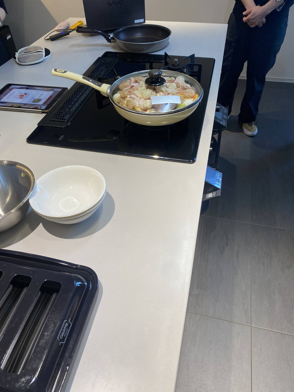 アプリでレシピを入力し、コンロを点火する