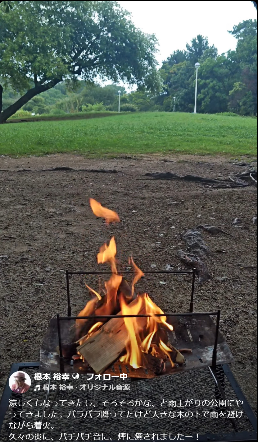 昨日、大阪の友人が公園で焚き火をしている写真をSNSにアップしていました。